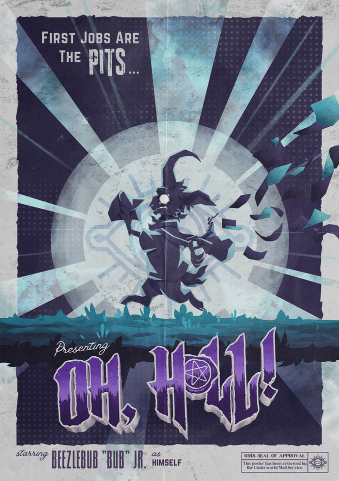 One of the most rewarding components of the design process for Oh, H*LL! was the creation of its logo, inspired by vintage and retro horror movie advertising. Additionally, the game's logo design was influenced by archetypal comic book typography, leaning further into its place within the "cartoon" genre.
